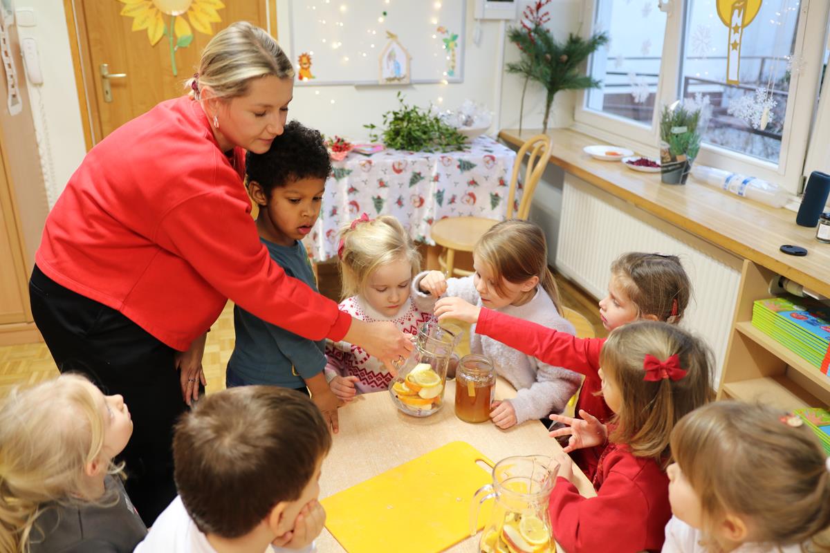 18 i 19 grudnia odbyły się warsztaty bożonarodzeniowe z udziałem Rodziców. Były konkursy, piosenki i  tańce, wspólna praca nad stroikami lub piernikami, świąteczna herbatka oraz ulubione przez dzieci – zabawy polisensoryczne.