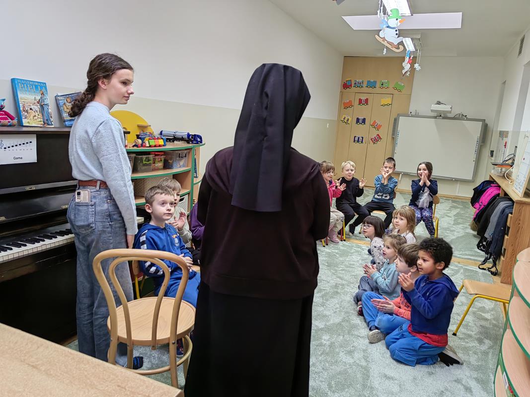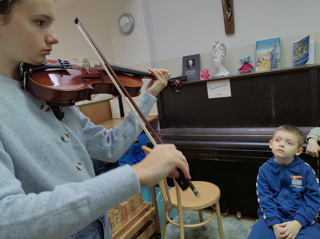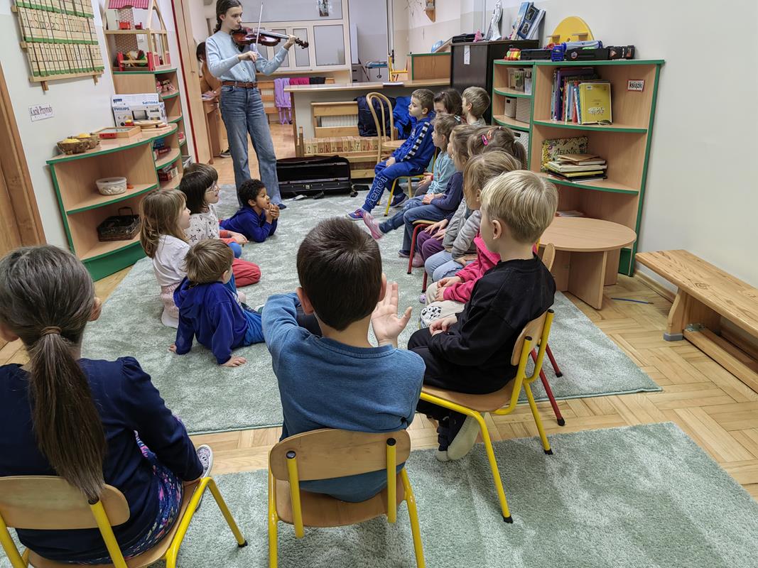 Dnia 28 stycznia w naszym przedszkolu odbyło się wyjątkowe spotkanie muzyczne – kolędowanie z udziałem absolwentki naszego przedszkola, Zosi. Gość specjalny zaprezentował dzieciom kolędy, grając na skrzypcach oraz pianinie.