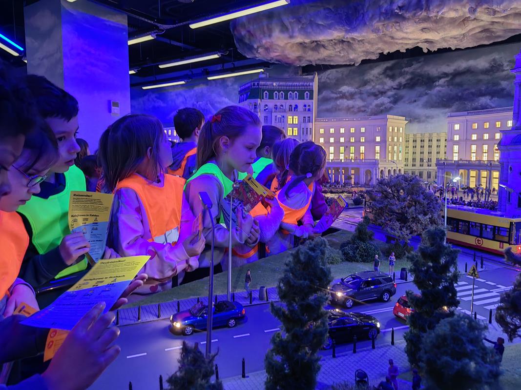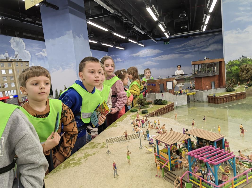 Podczas zwiedzania przedszkolaki z ogromnym zainteresowaniem obserwowały poruszające się pociągi, samochody oraz scenki z życia codziennego mieszkańców miniaturowych miast. Szczególną radość sprawiło im odkrywanie różnych detali i ukrytych elementów makiety.