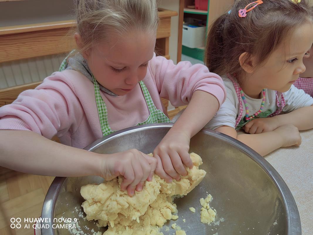 Dzisiejszego poranka 2 października 6-latki spędziły niezwykle pracowicie. Podjęły się zadania upieczenia ciasta ze śliwkami.