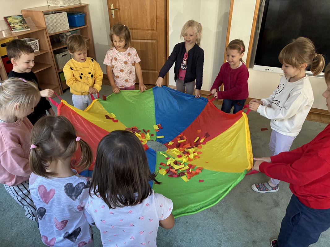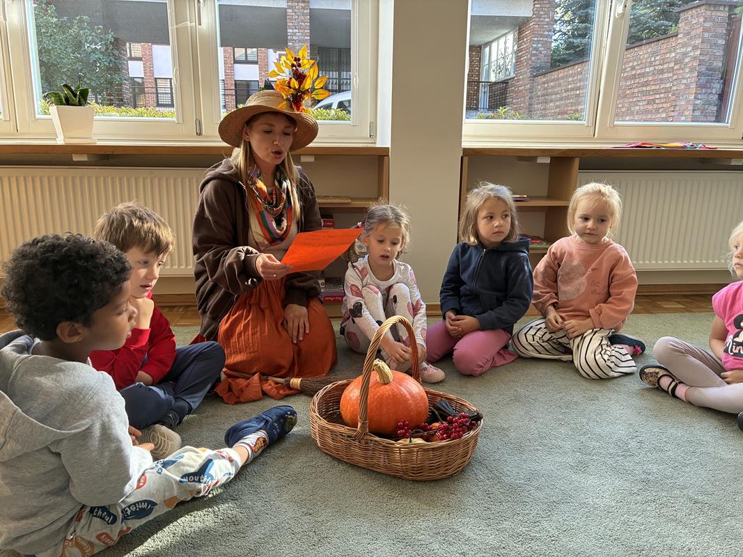 24 września 2025 r. pięciolatki świętowały swój Pierwszy Dzień Jesieni. Po uroczystym odczytaniu listu oraz jesiennej listy zadań przez Panią Jesień dzieci wyruszyły na poszukiwanie oznak tej złocistej pory roku.