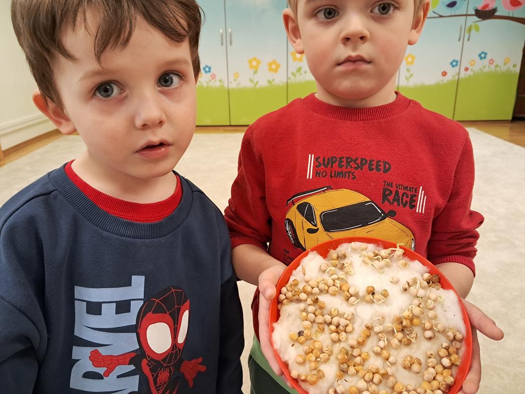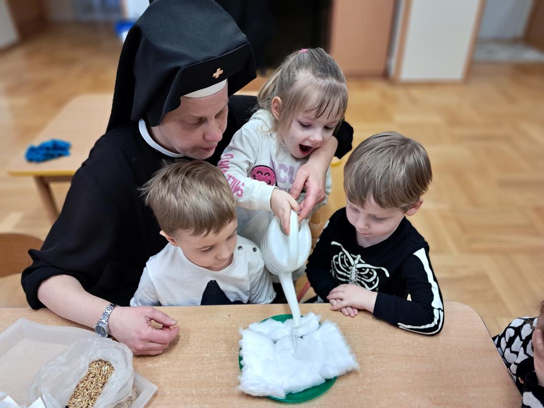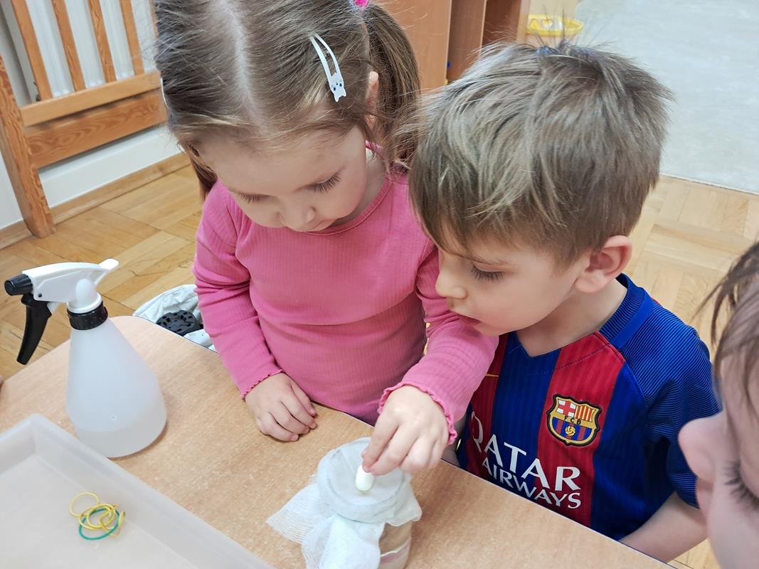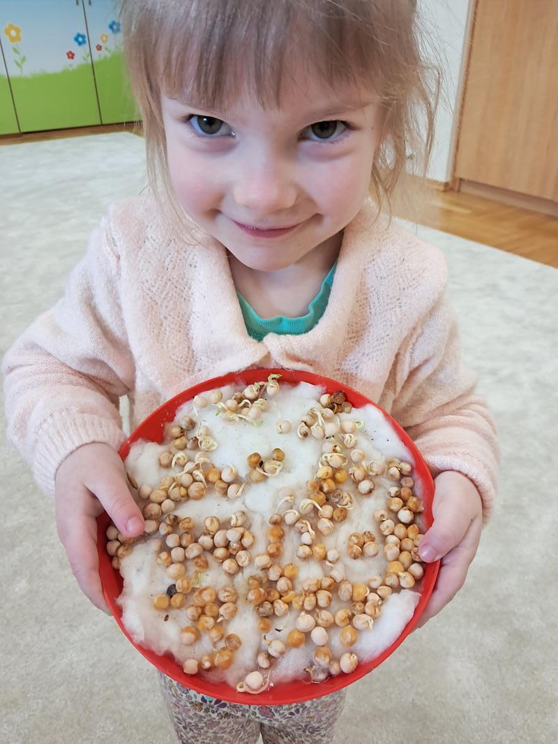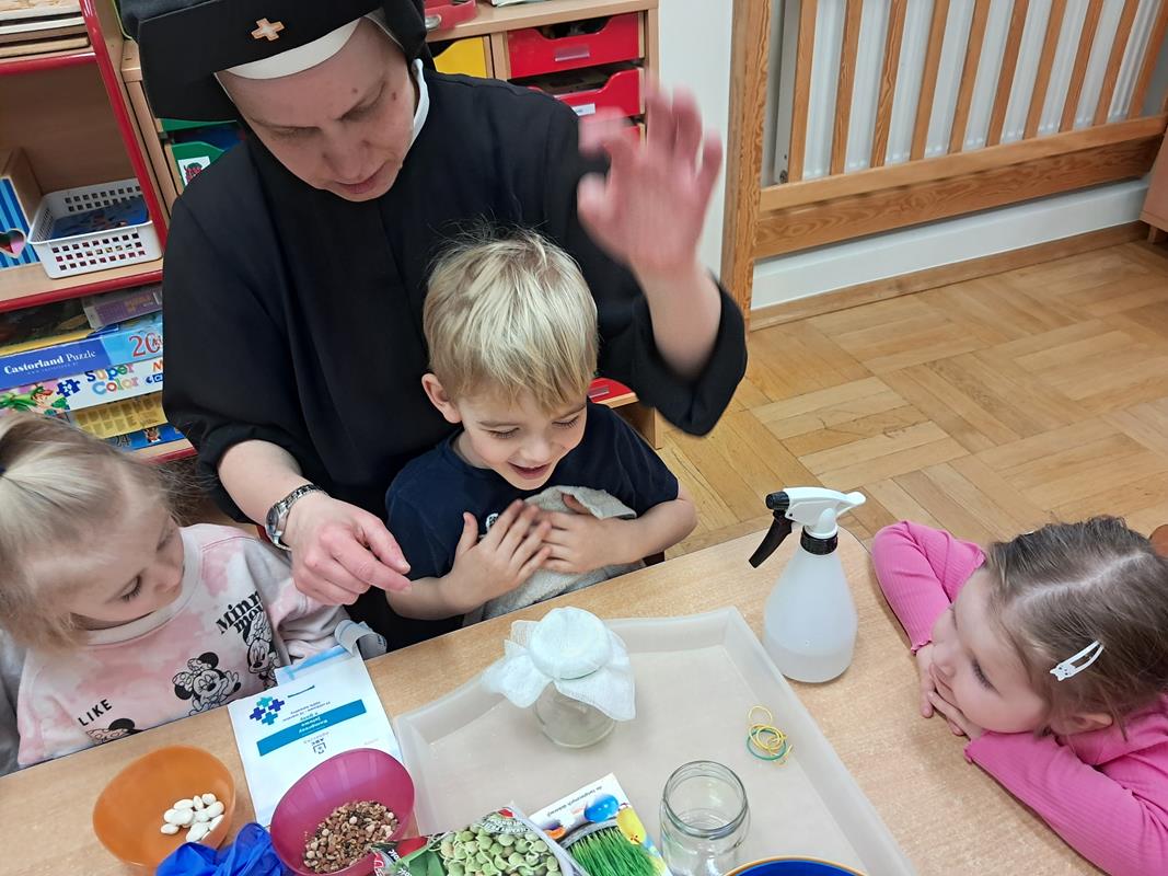 23 marca 2026 roku grupa 3-latków dobitnie zaakcentowała przyjście kolejnej pory roku przez założenie własnego ogródka. W pierwszym etapie przedszkolaki ustaliły niezbędne warunki do wzrostu roślin: odpowiednie podłoże, woda i słońce. Następnie porównywały nasiona i cebulki by ostatecznie przejść do praktyki – do sadzenia fasoli, cebulki, owsa i kiełek rzodkiewki. Zatem poszły w ruch łopatki, grabki i konewki, a wiosennej zabawy z ziemią i wodą nie było końca. I trzeba już tylko czekać i obserwować…